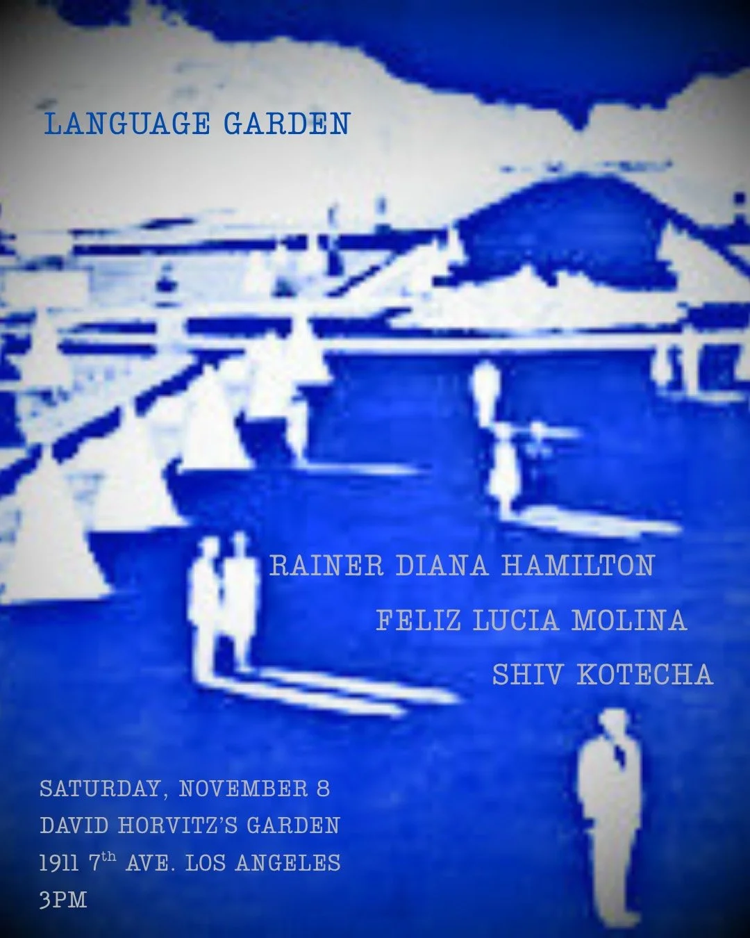 Language Garden presents, from New York, writers Rainer Diana Hamilton and Shiv Kotecha, with Los Angeles poet Feliz Lucia Molina. Rainer’s new book Lilacs is just out from Krupskaya Books.