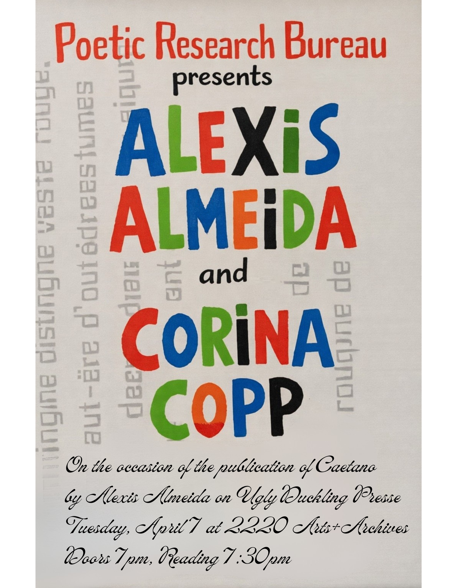 Celebrating the Los Angeles launch of Alexis Almeida's new book, Caetano, from Ugly Duckling Presse. With Corina Copp.